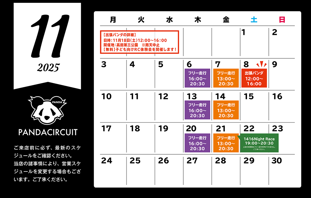 2025年11月もPANDA CIRCUITを宜しくお願い致します。